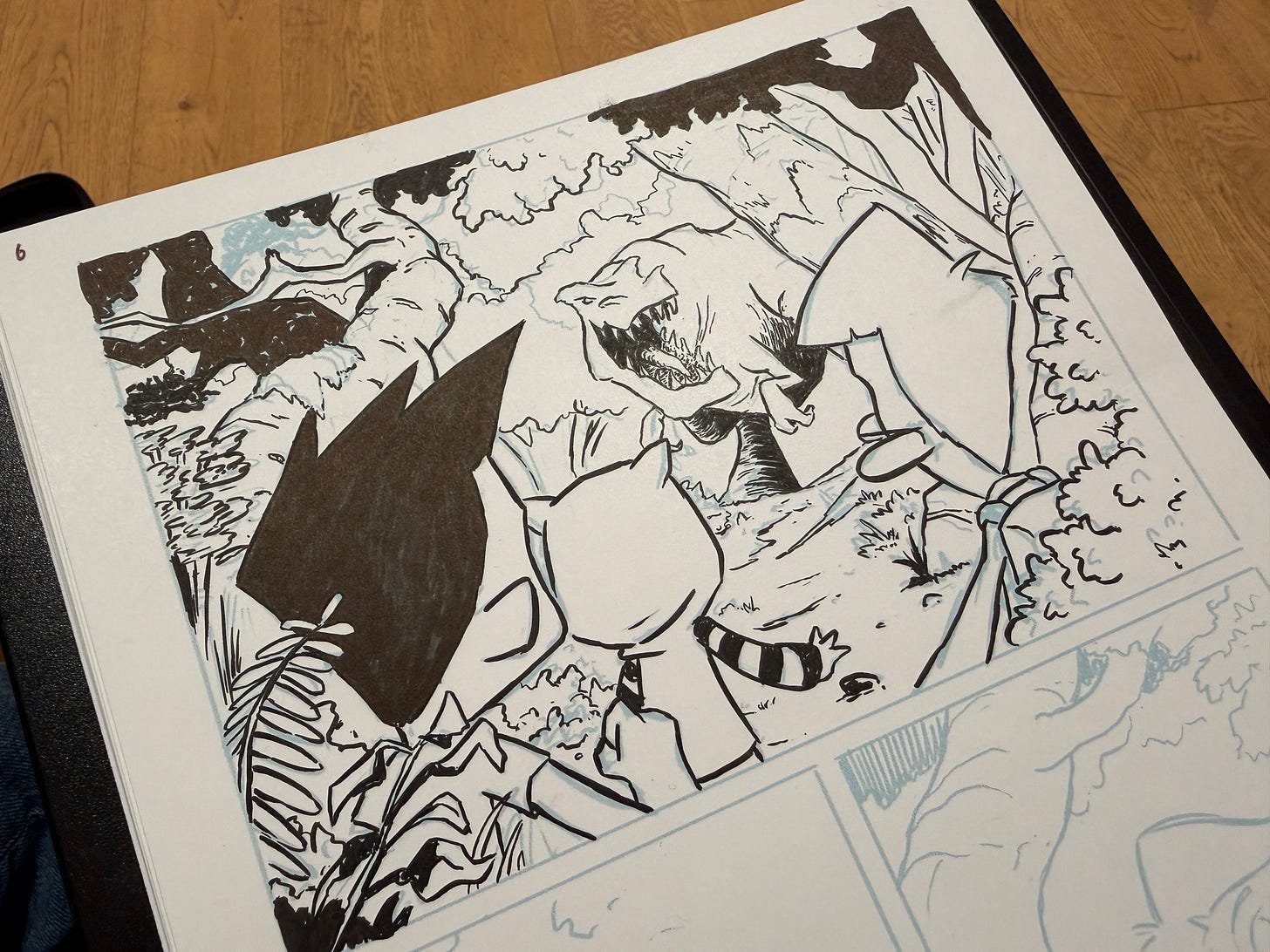 To me, inking always feels like a bit of a milestone. From this point on, things are pretty much locked in. I might adjust a few things digitally later on but once I’m at this point, I don’t really go back to change a panel or a page. So it’s now where I really start to feel like I’m making progress.